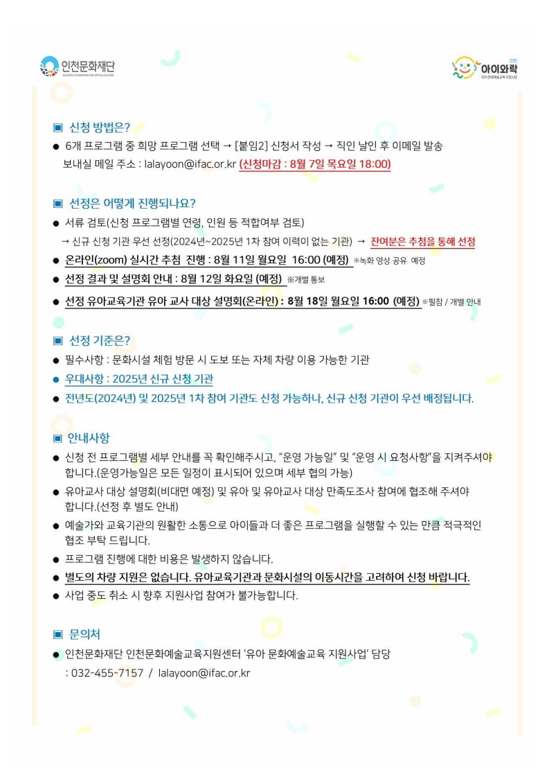 [인천문화재단]누리과정 연계 유아 문화예술교육 프로그램 참여 유아교육기관 모집