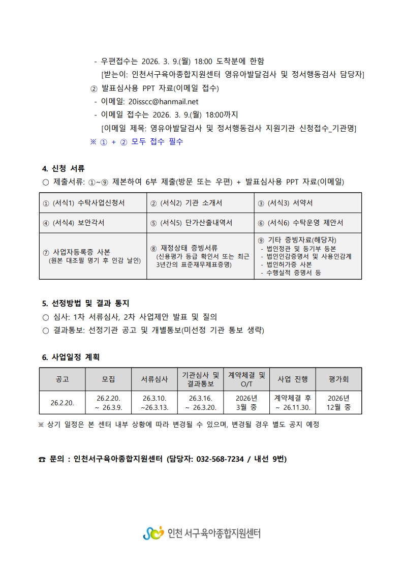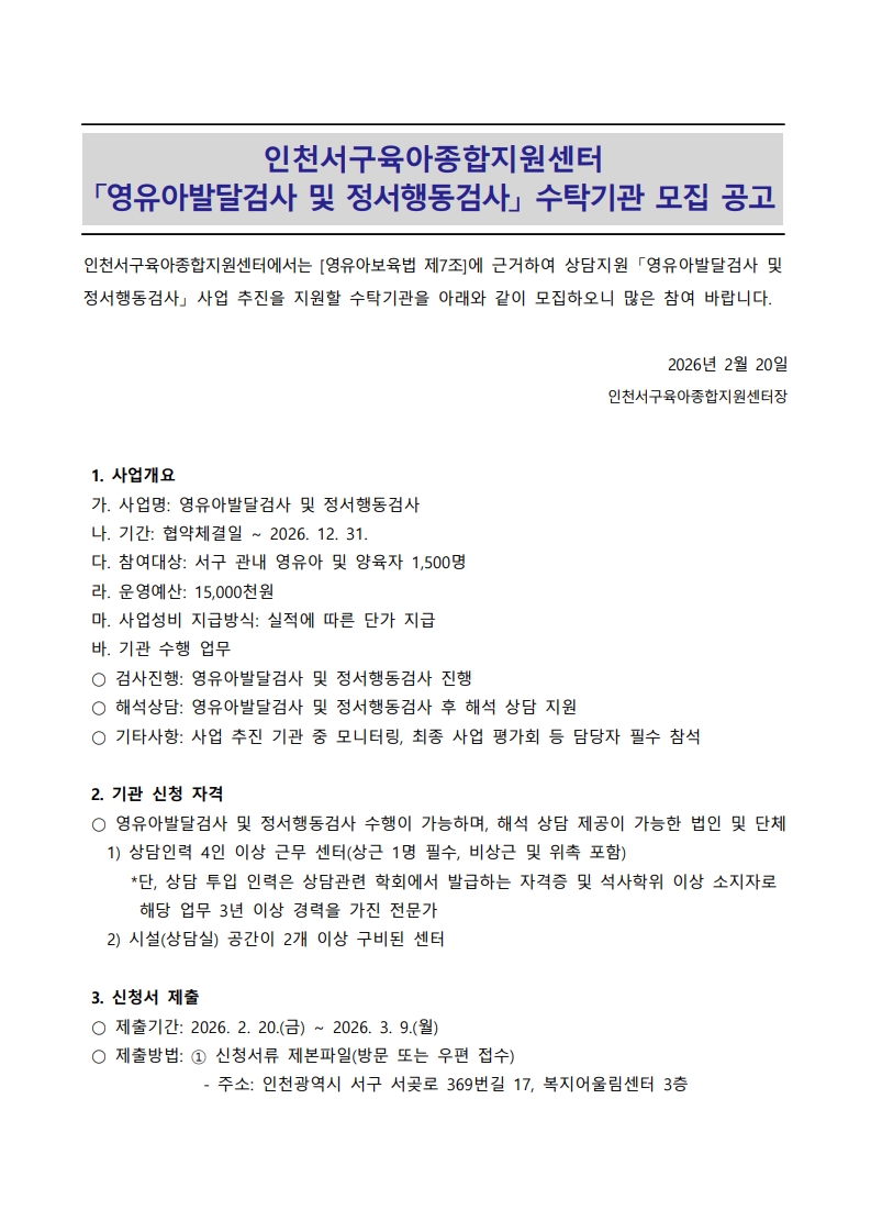 [인천서구육아종합지원센터] 영유아발달검사 및 정서행동검사 수탁기관 공고