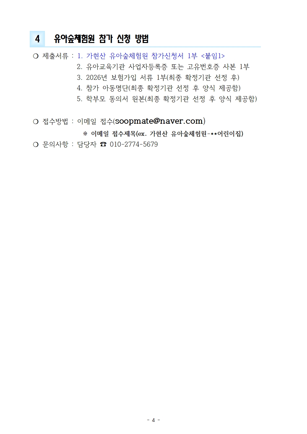 [산림청 서울국유림관리소] 2026 산림교육 운영사업(E) 장수산유아숲체험원 모집공고