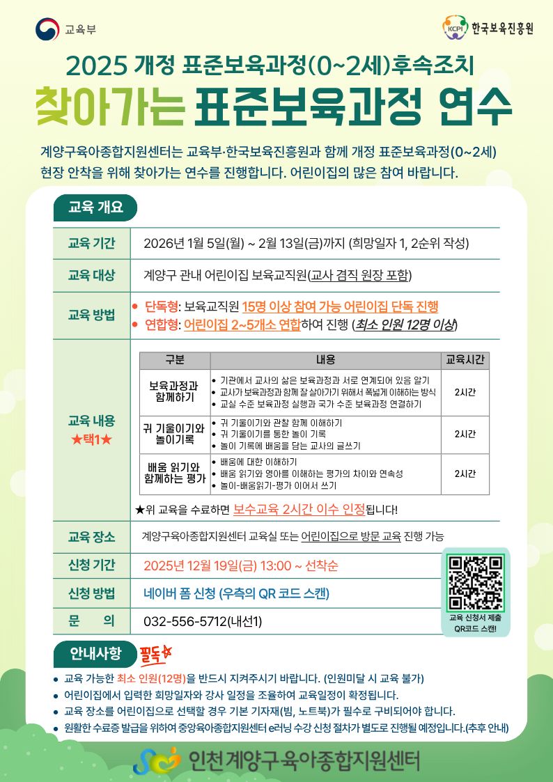 ★마감★[보수교육 인정] 어린이집으로 찾아가는 표준보육과정 연수 참여 기관 모집 안내