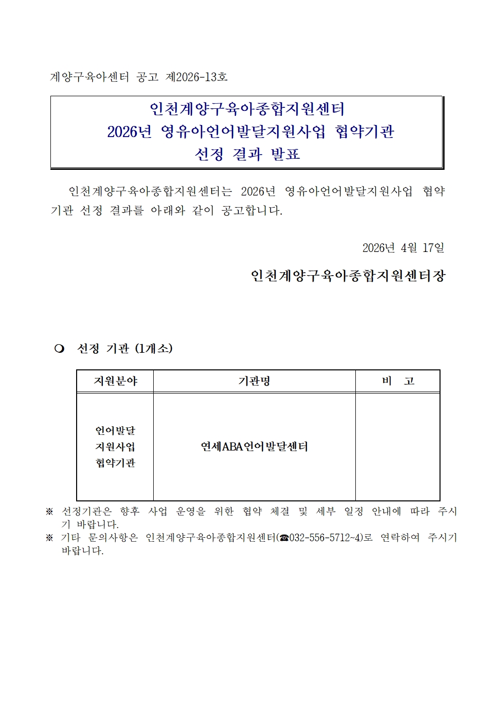2026년 영유아언어발달지원 협약기관 선정 공고