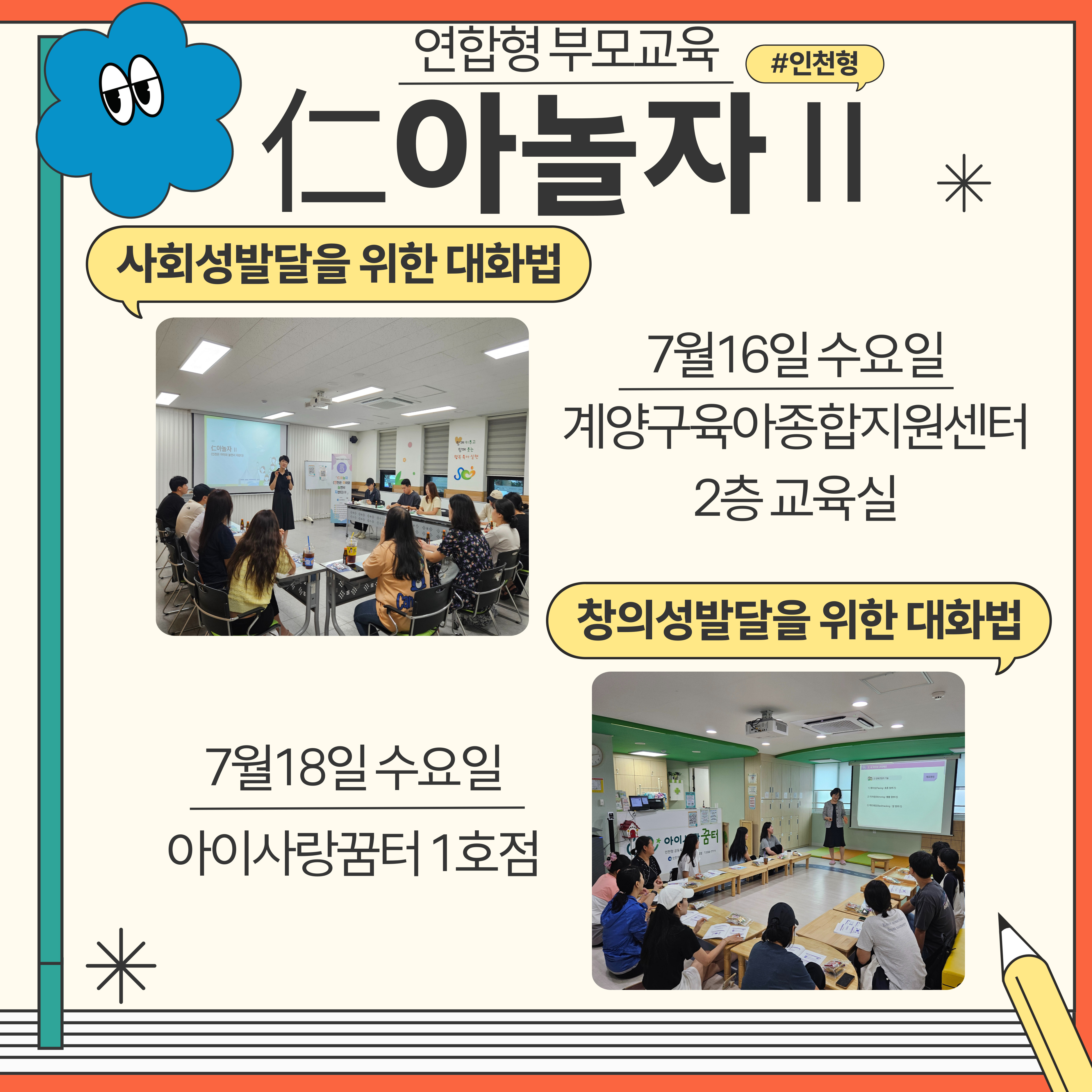 ♥ 7월 16일(수) 10:00 계양구육아종합지원센터 교육실 / 7월 18일(금) 10:00 아이사랑꿈터 1호점