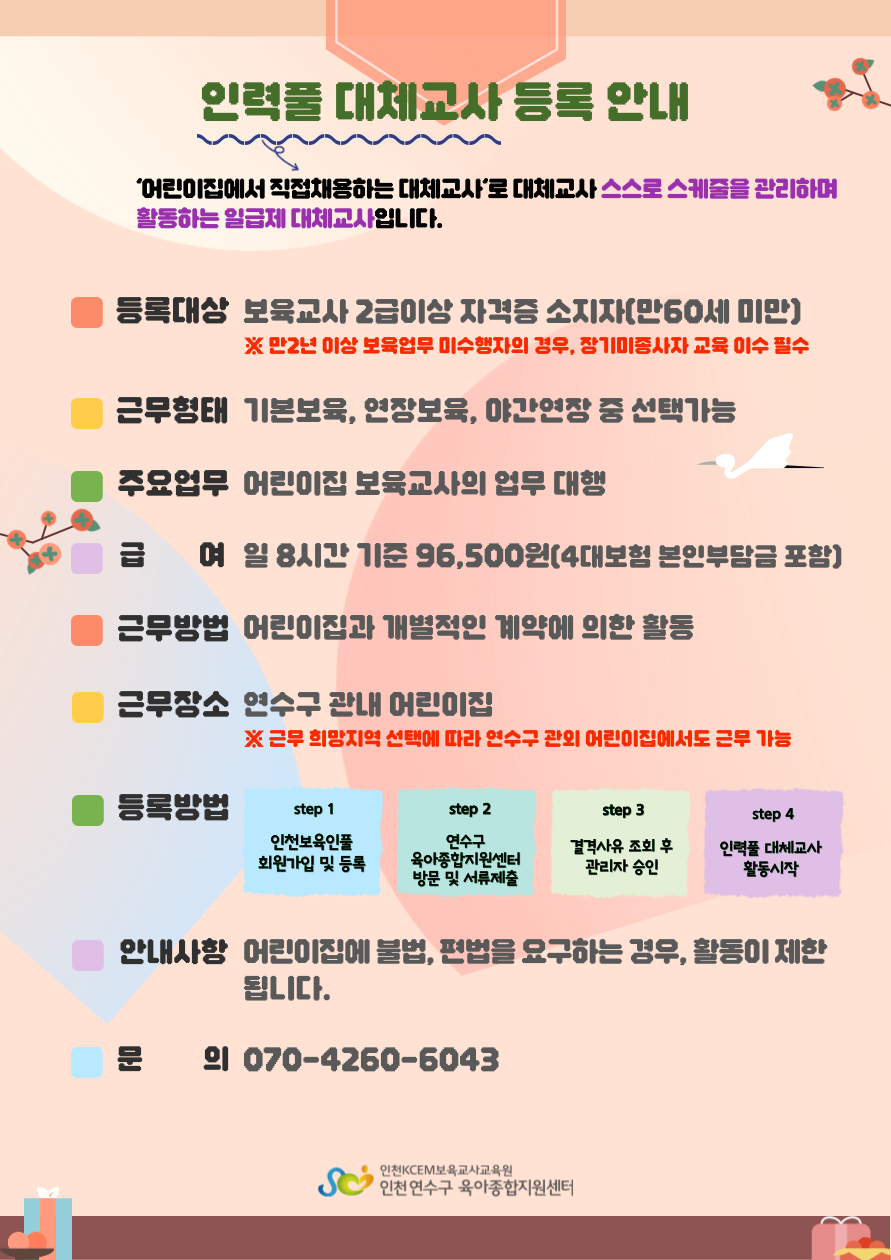 [연수구육아종합지원센터] 인력풀 대체교사 모집 안내문