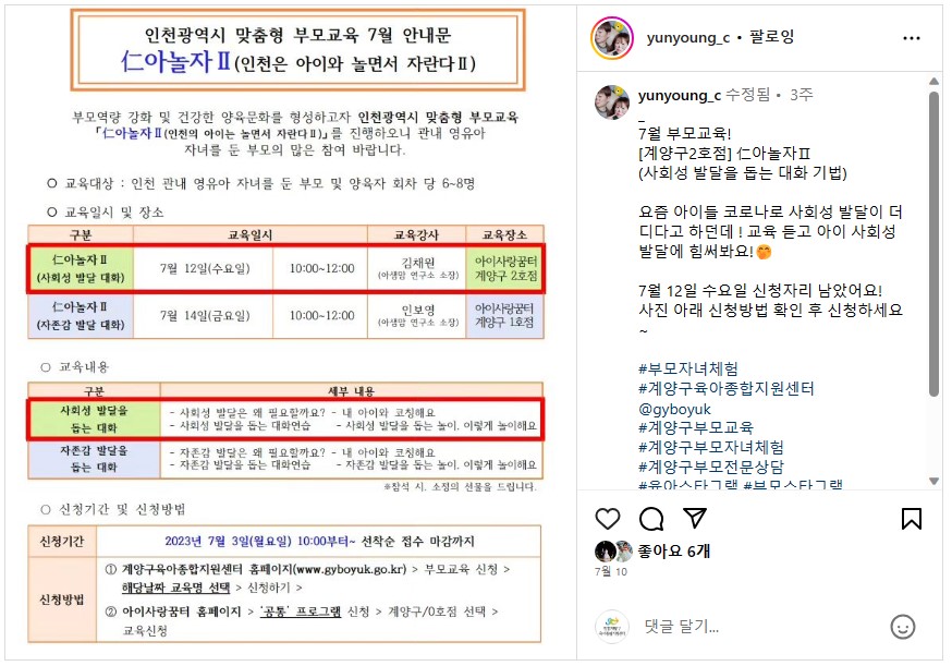 [부모SNS홍보단-계플루언서(7월)] 인천형부모교육 仁아놀자 모집안