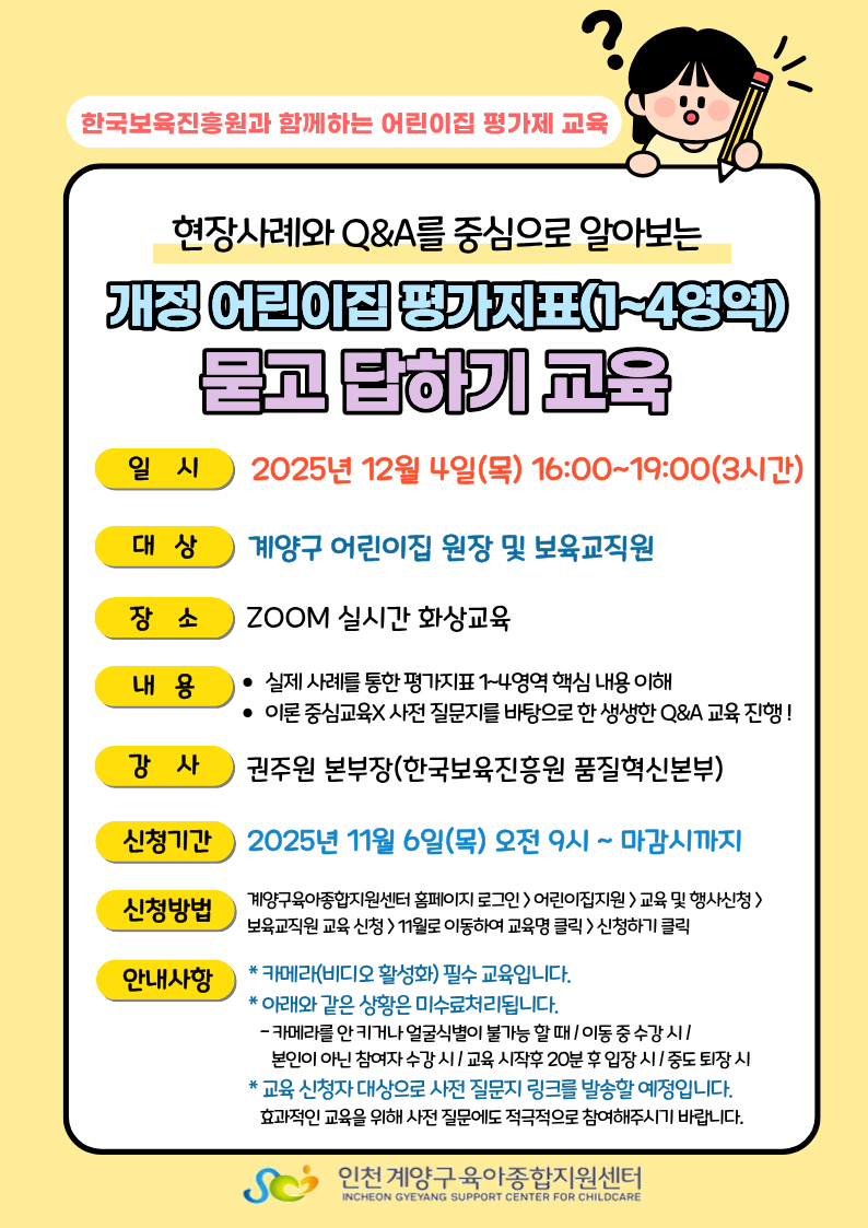 개정 어린이집 평가지표(1~4영역) 묻고 답하기 교육