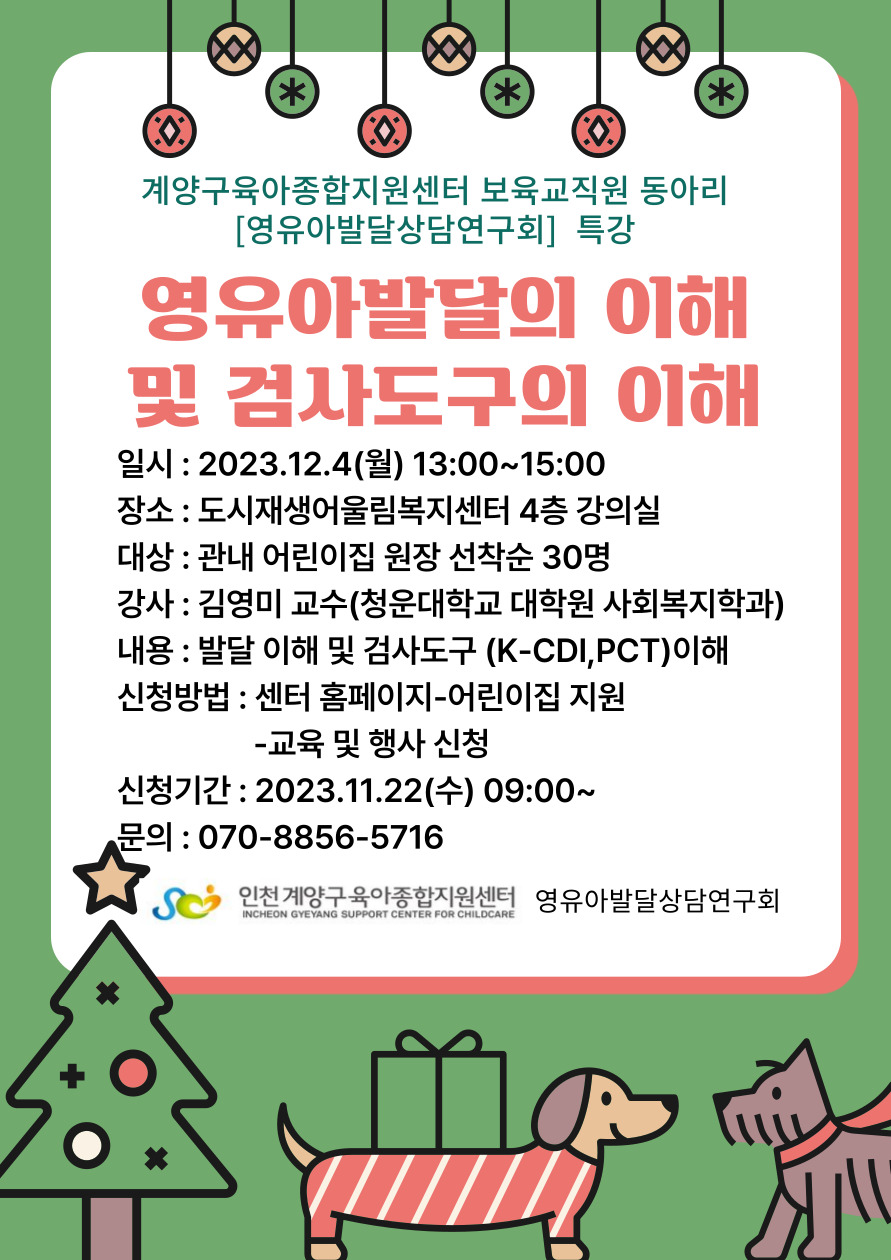 | 기타사항 | 보육교직원 동아리 [영유아발달상담연구회]에서 진행하는 교육으로 어린이집 원장님들로 함께 들을 수 있도록 준비하였습니다. | ||