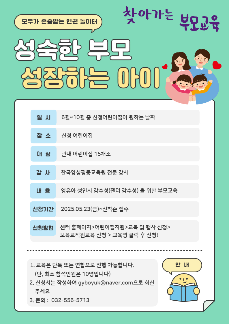 | 접수대상 | 원장, 보육교직원 | 정원 | 15명 (신청: 2) |
