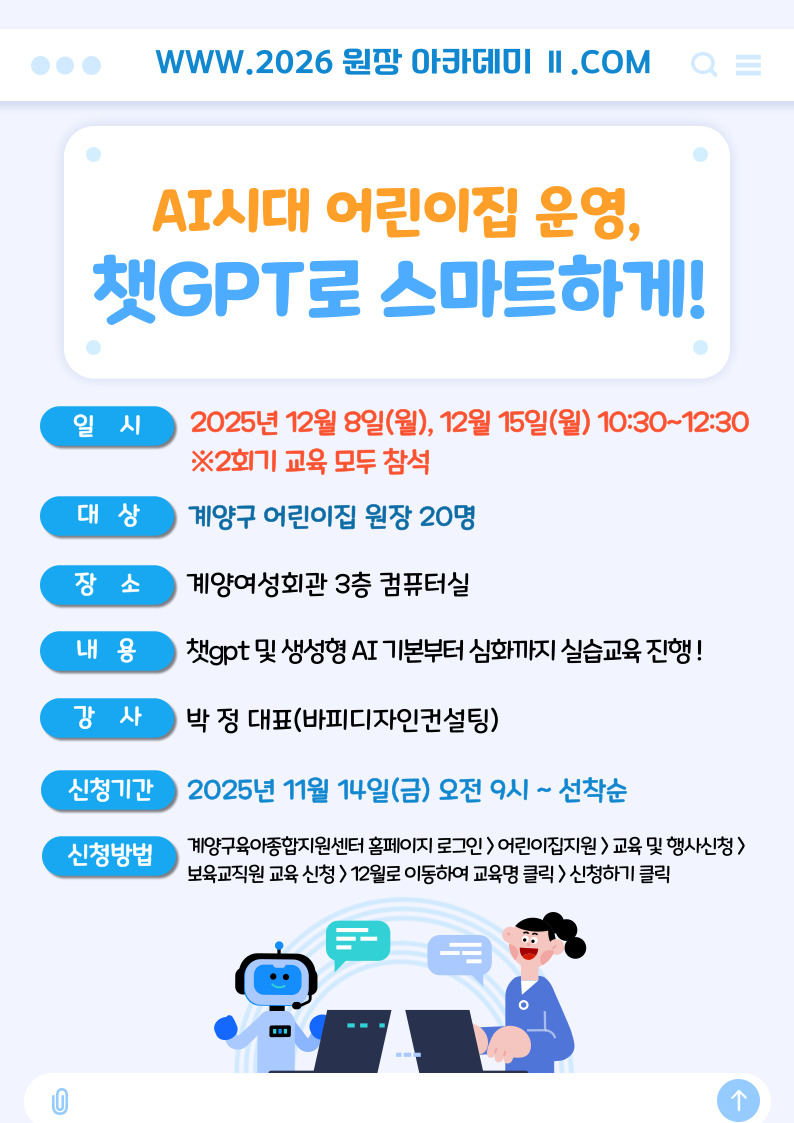 | 교육기간 | 2025-12-08(월) 10시30분 ~ 2025-12-15(월) 12시30분 | ||
