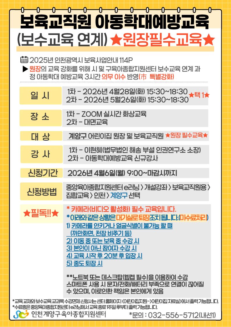 | 접수대상 | 원장, 보육교직원 | 정원 | 0명 (신청: 0) |