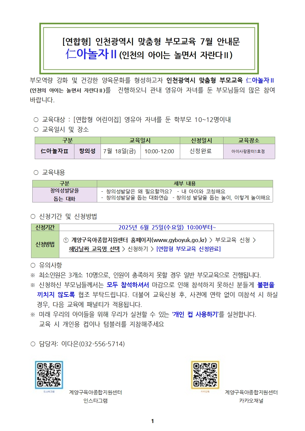 [연합형 인천형 부모교육] 仁아놀자Ⅱ-창의성