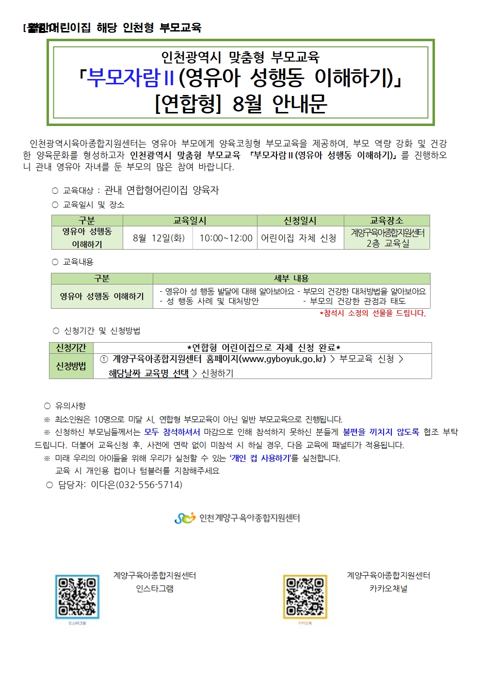 [연합형 인천형 부모교육] 부모자람Ⅱ (영유아 성행동 이해하기)