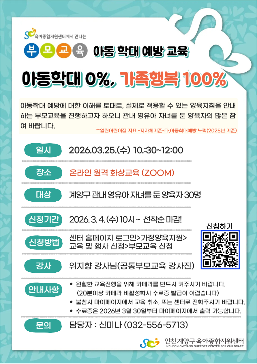 센터 교육실 (계양구 봉오대로 510, 2층) |