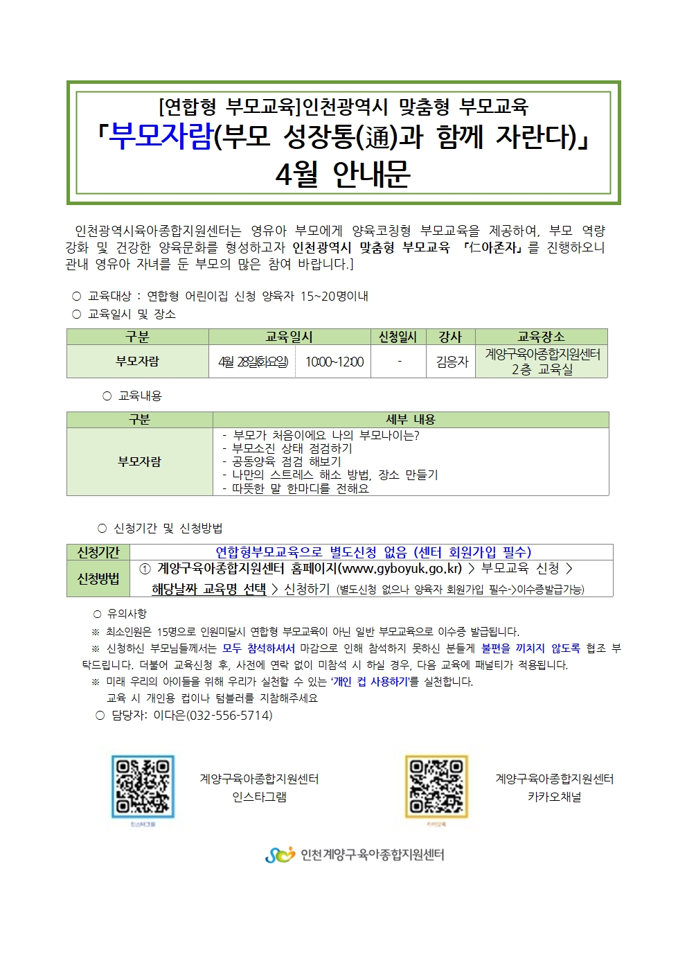 **어린이집 연합형 부모교육입니다.** |