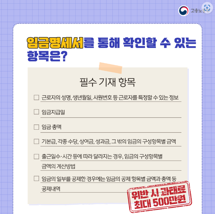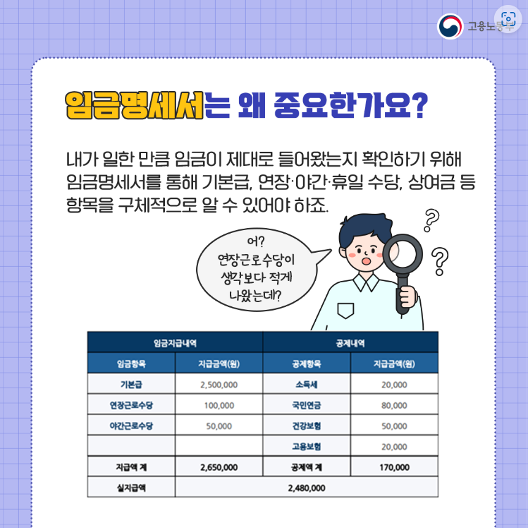 소중한 내 월급 임금명세서로 꼼꼼히 확인하세요!