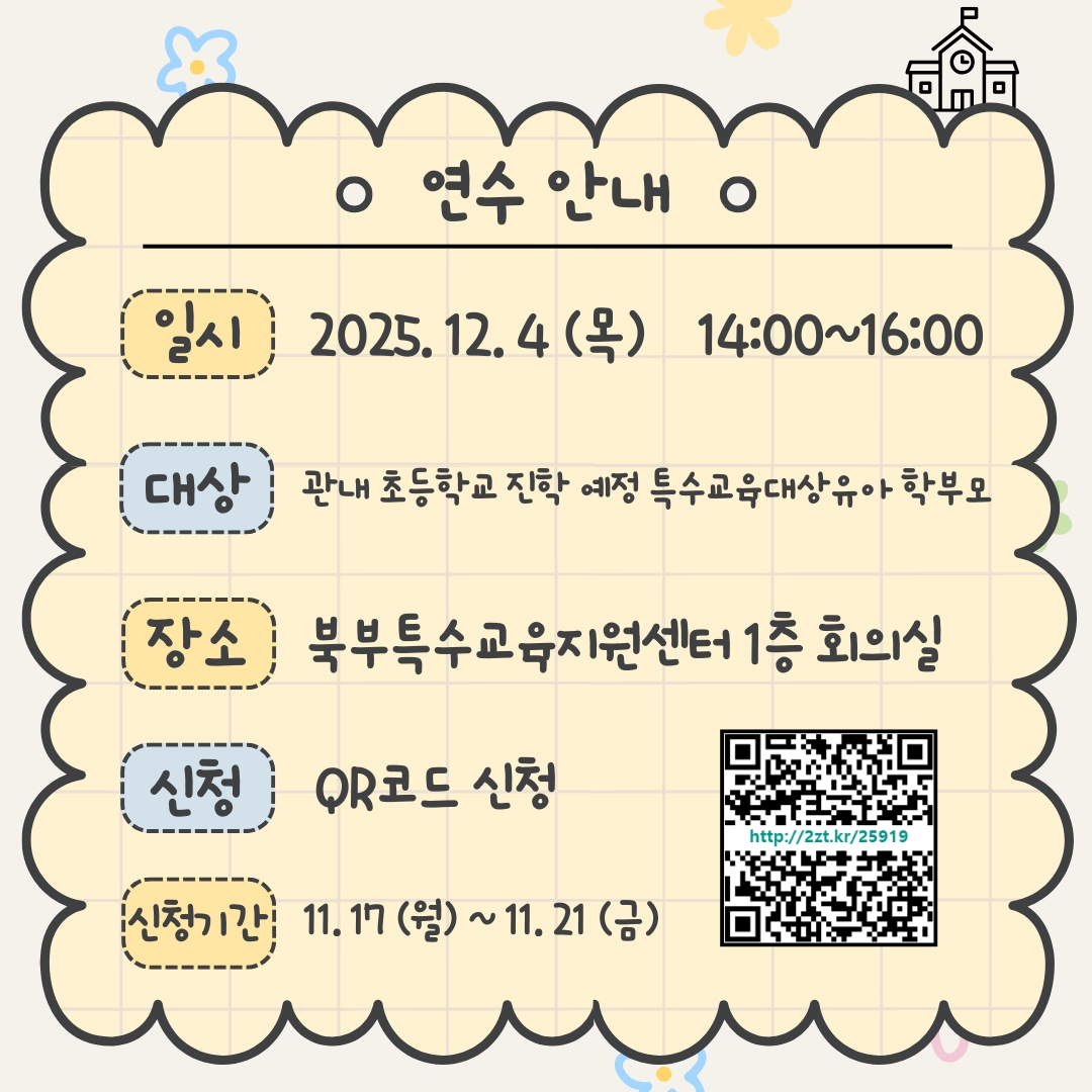 2025학년도 특수교육대상자 초등학교 진학을 위한 학부모 연수 안내