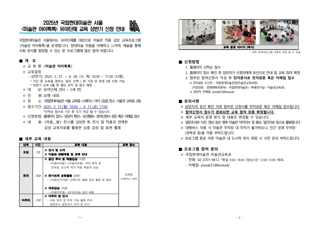 2025년 국립현대미술관 서울 〈미술관 아이톡톡〉상반기 유아단체 교육프로그램