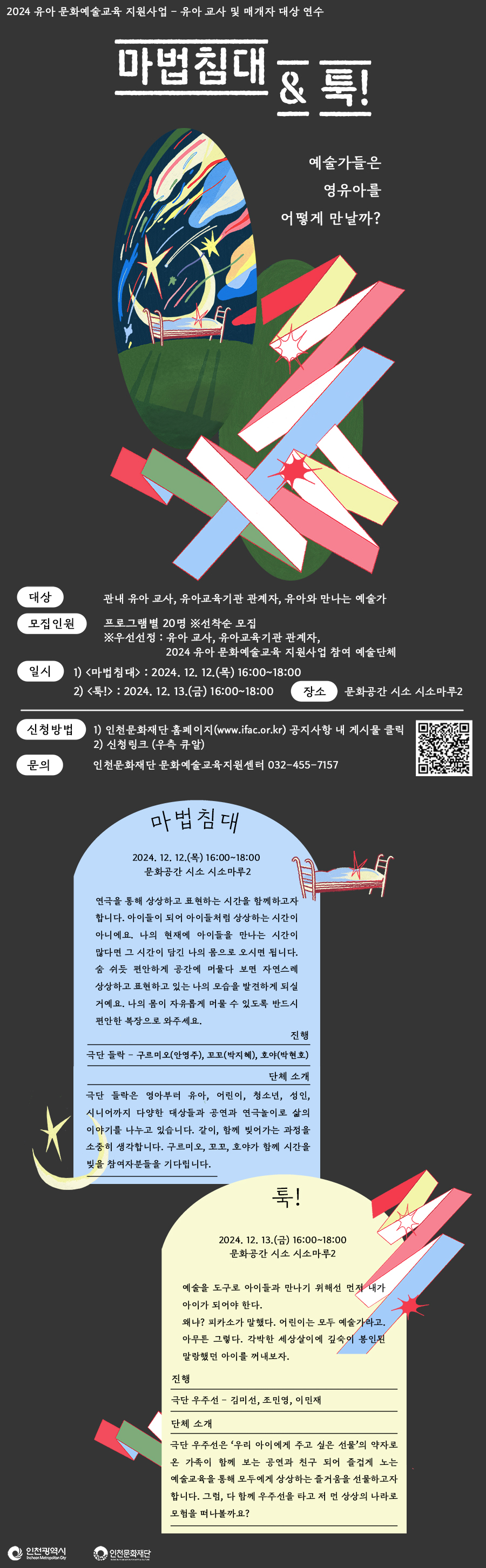 [인천문화재단] 유아 교사 및 유아 기관 관계자 대상 연수 <마법침대&툭!>