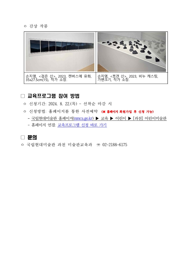 [과천어린이미술관] 2024년 국립현대미술관 어린이미술관 유아 단체 교육프로그램 안내