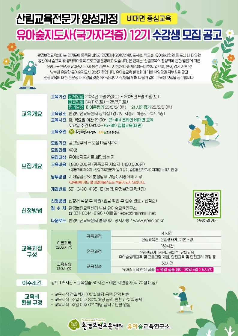 [환경보전교육센터] 유아숲지도사 12기 양성과정 모집