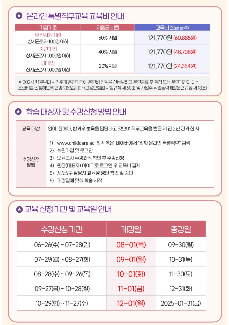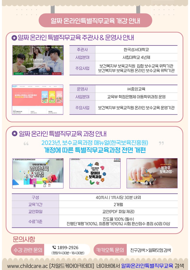 [알짜 온라인 특별직무교육] 보육교사 온라인특별직무교육 안내