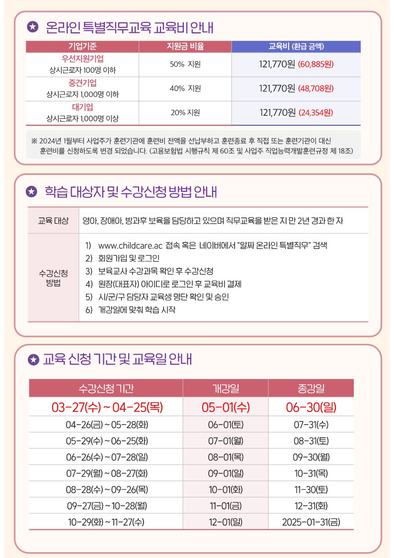 [알짜] 온라인 특별 직무교육 2024년 5월 개강 안내