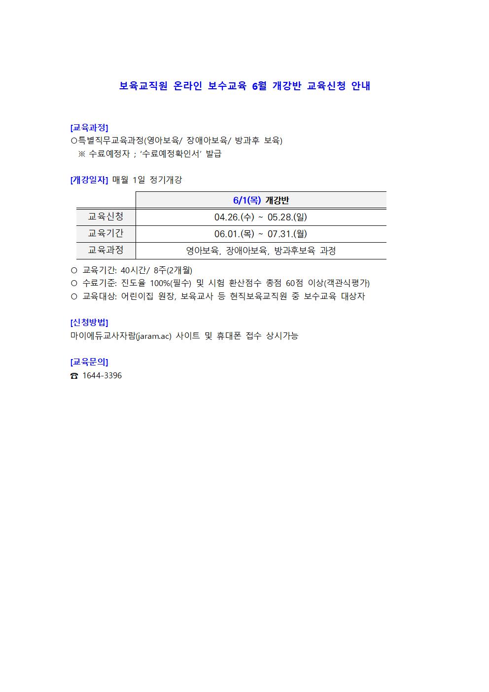 [마이에듀교사자람] 보육교직원 온라인 보수교육 신청안내