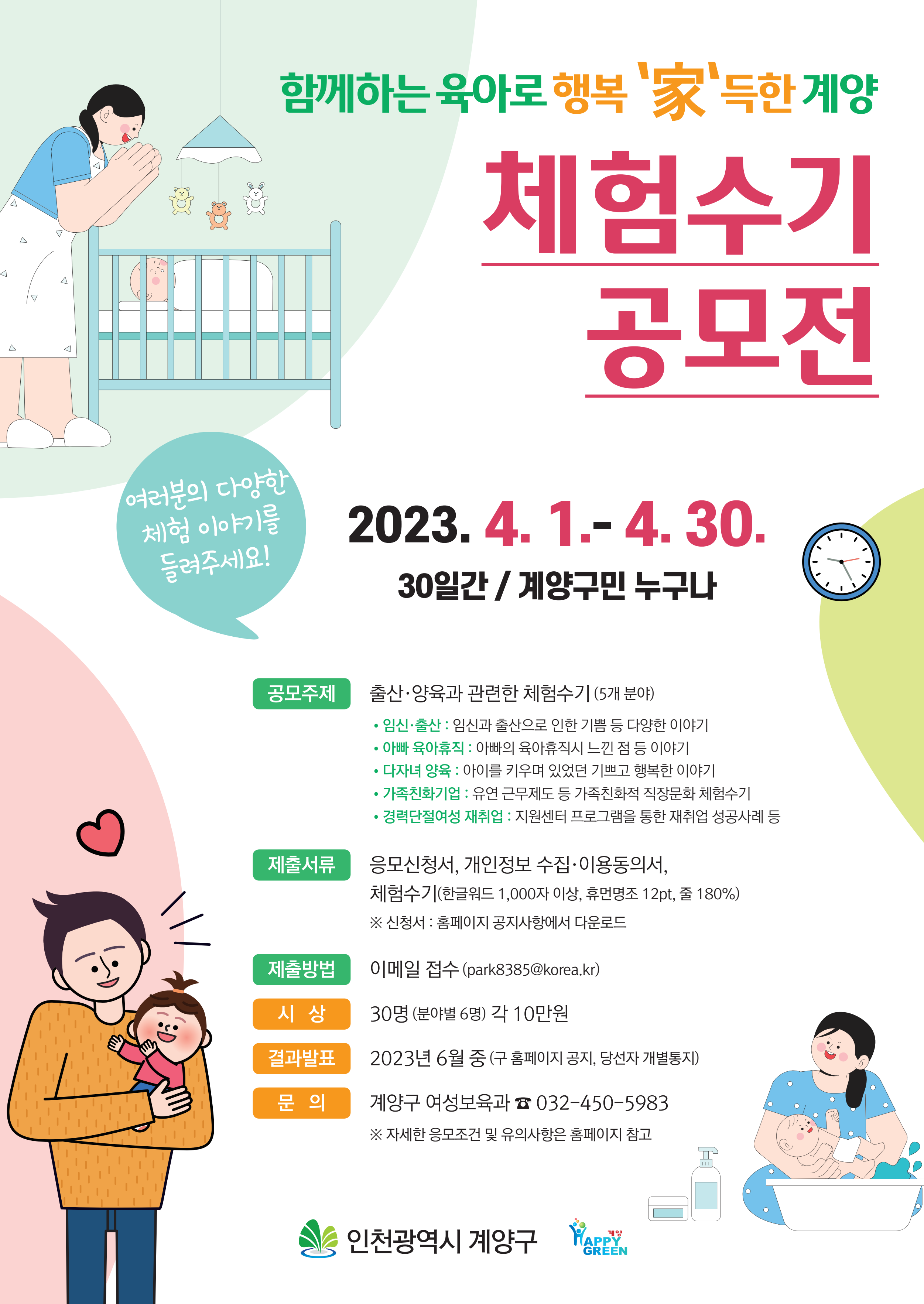 함께하는 육아로 행복 '家'득한 계양 체험수기 공모전 개최