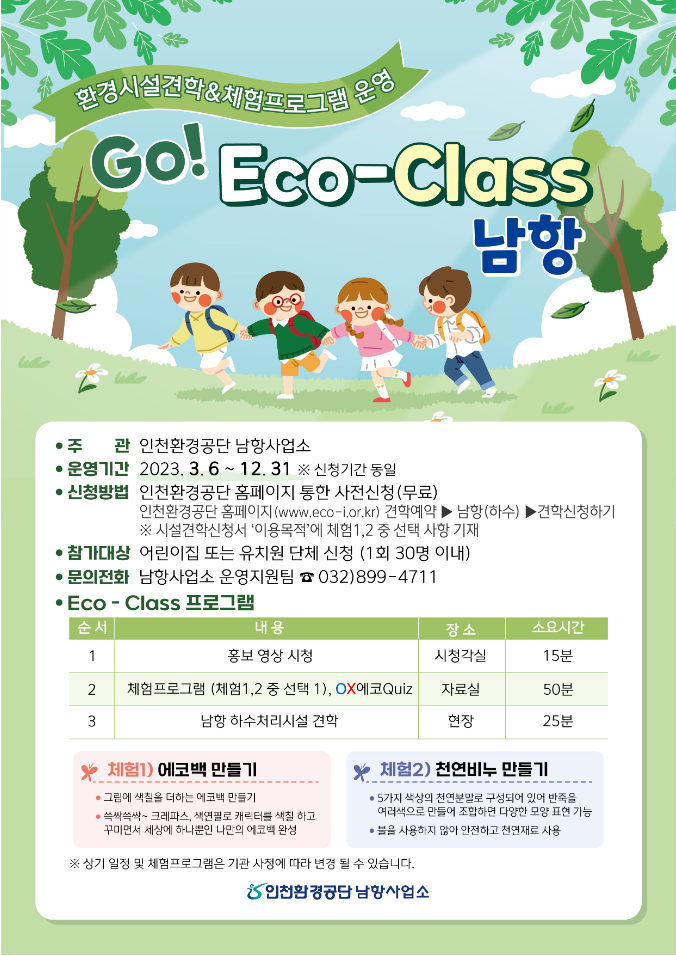 [인천환경공단 남항사업소] 「Go! Eco-Class 남항」 견학프로그램 안내