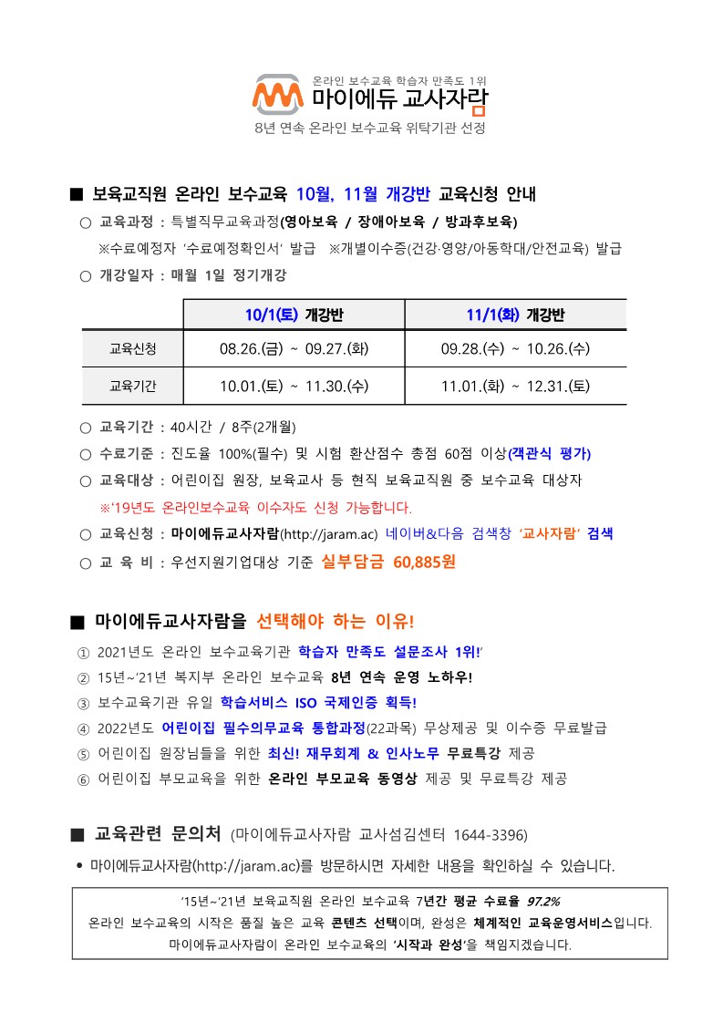 [마이에듀교사자람] 온라인 보수교육 10월개강반