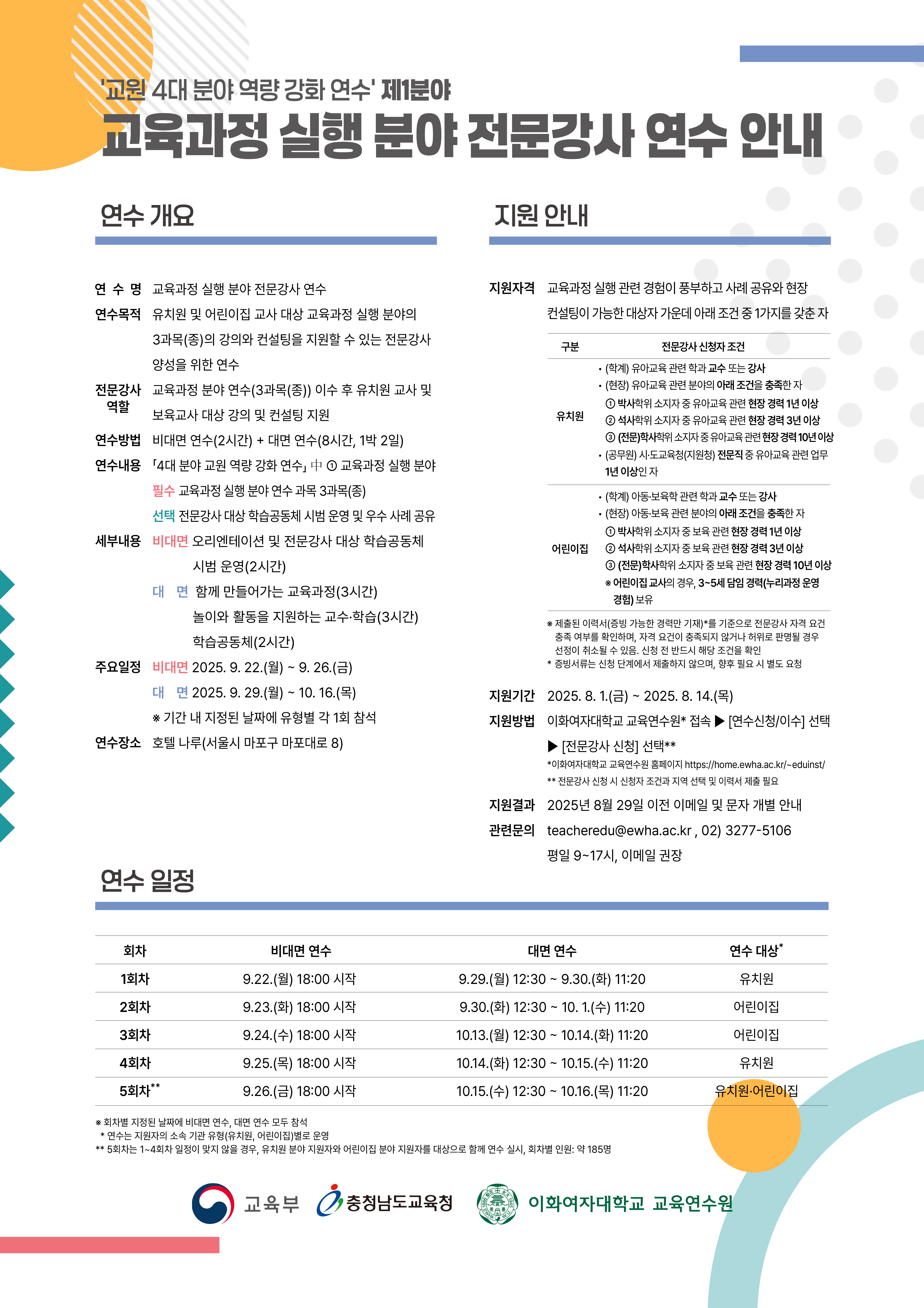교원 4대분야 역량 강화(교육과정 실행 분야) 전문강사 모집 안내