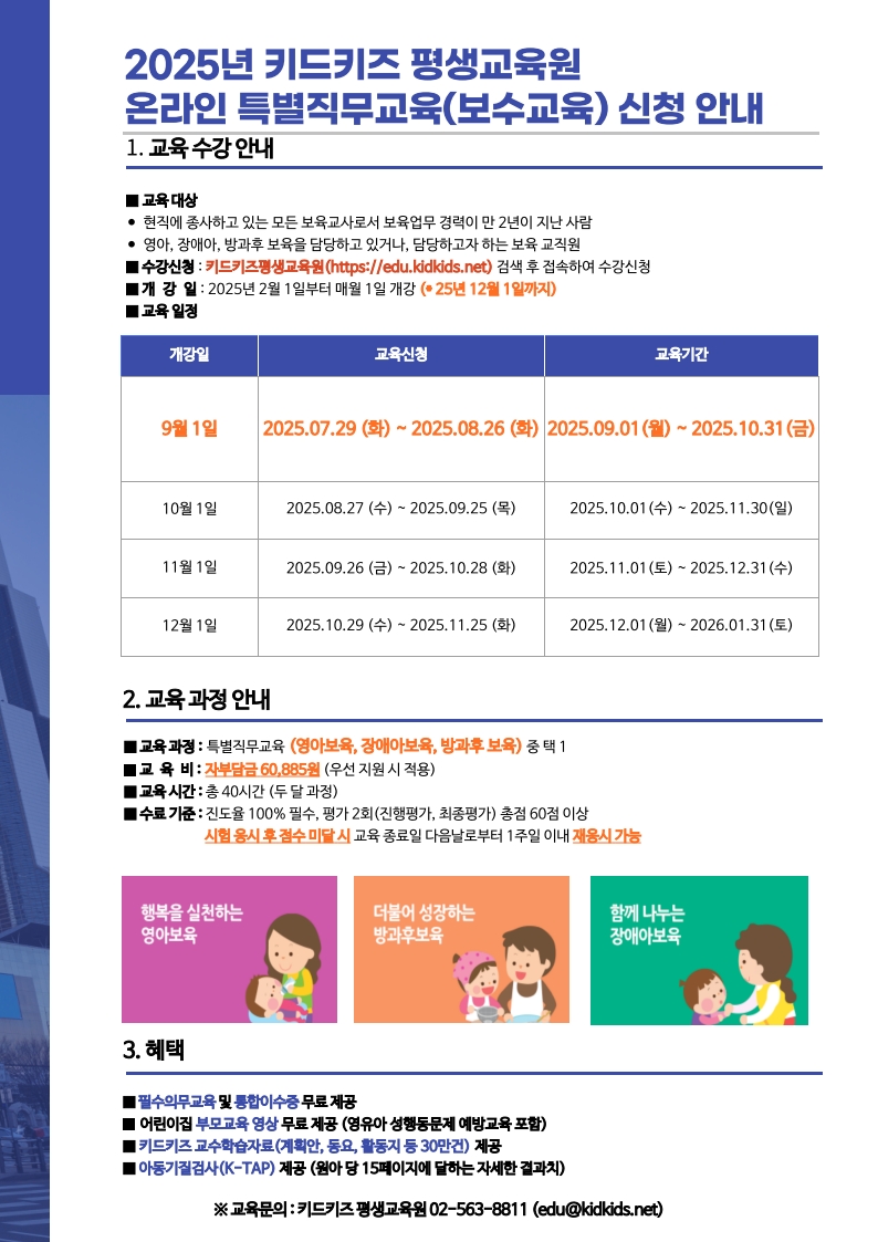 [EK 키드키즈 평생교육원] 보육교직원 온라인 특별직무교육 2025년 9월 개강반 안내