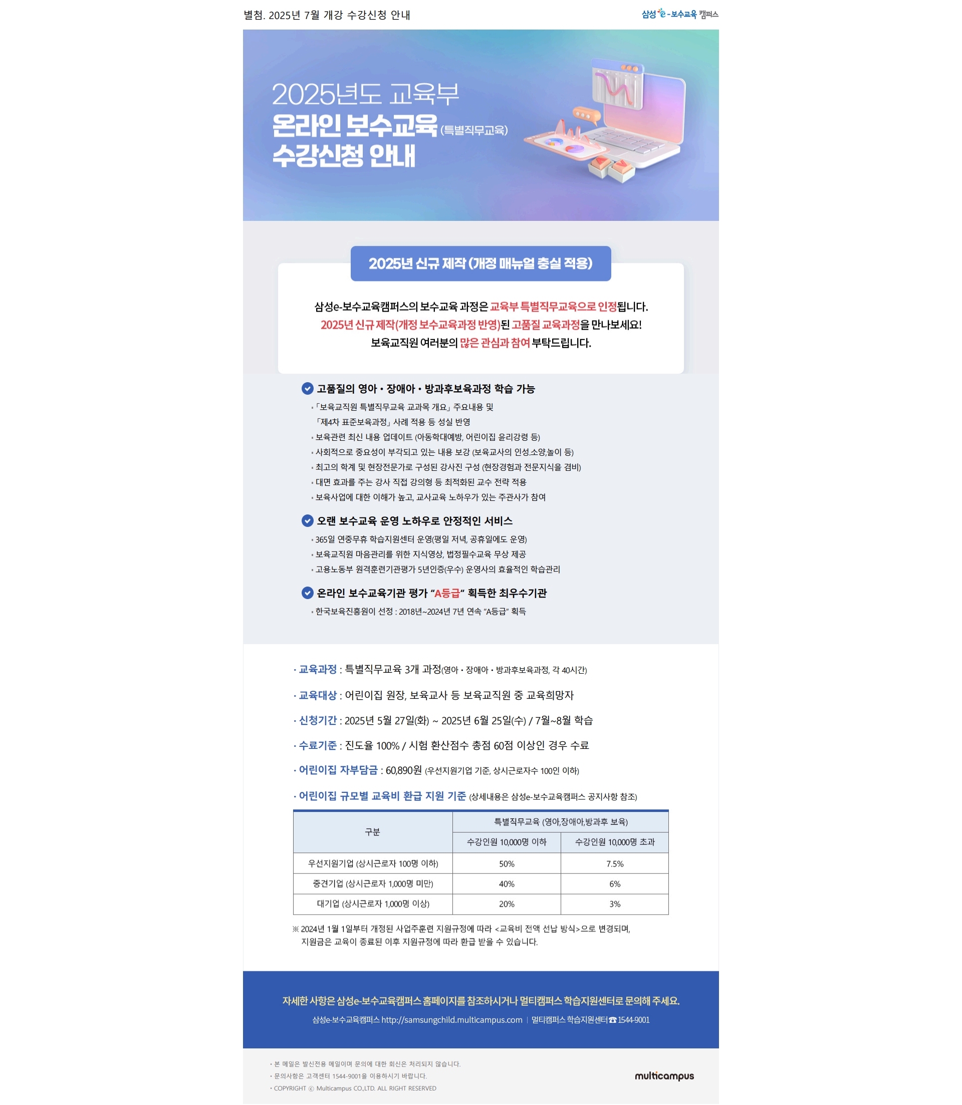 [삼성e-보수교육캠퍼스] 25년 7월개강 온라인 특별직무교육 수강신청 안내