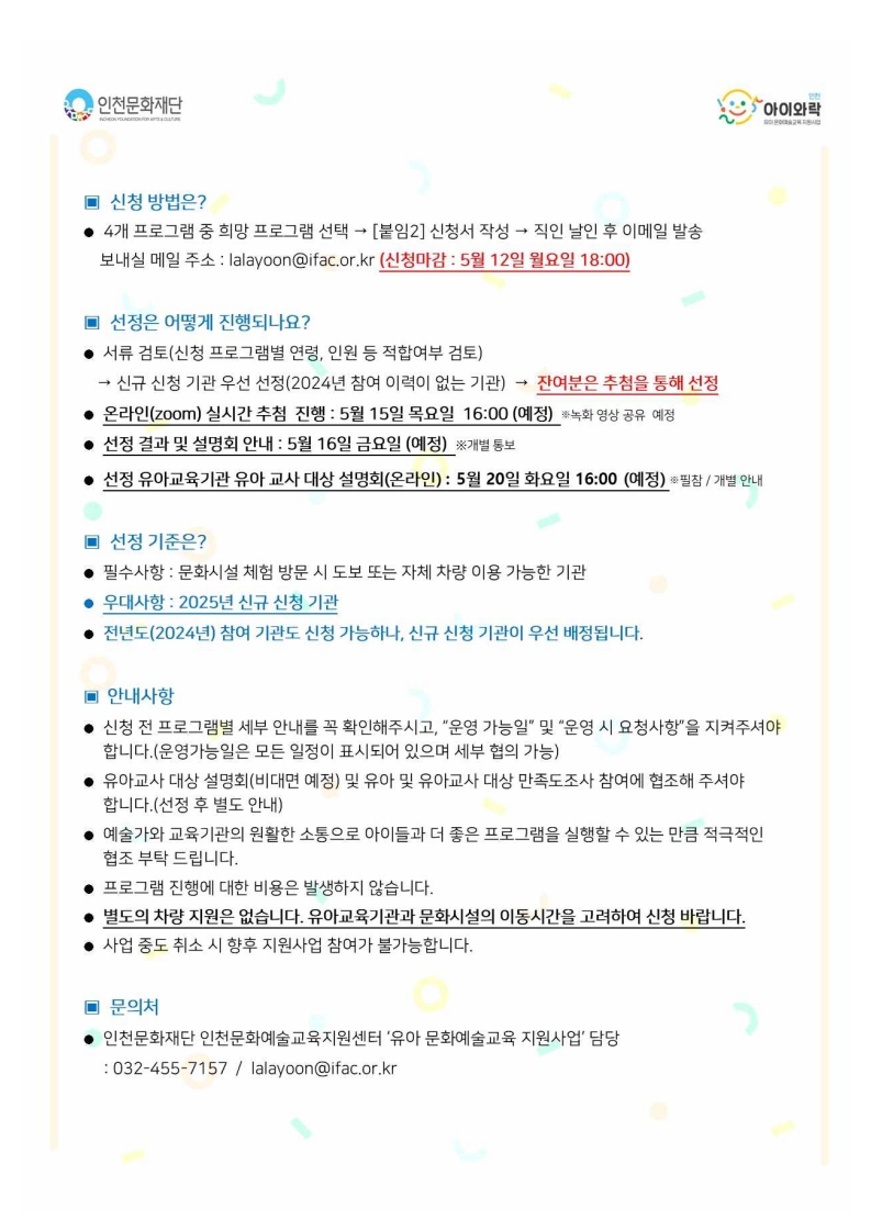 [인천문화재단]누리과정 연계 유아 문화예술교육 프로그램 참여 유아교육기관 모집
