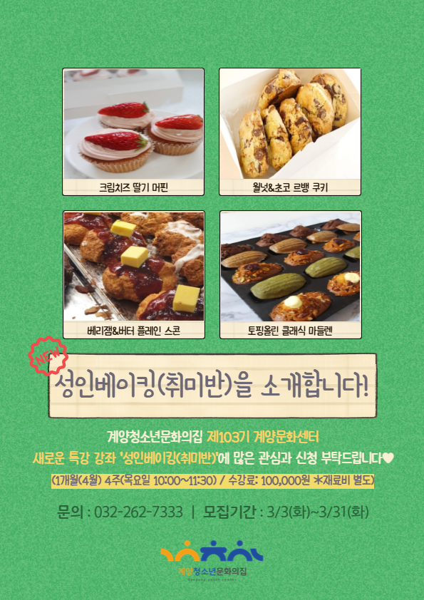 계양청소년문화의집 제103기 계양문화센터 신규 강좌 수강생 모집 안내