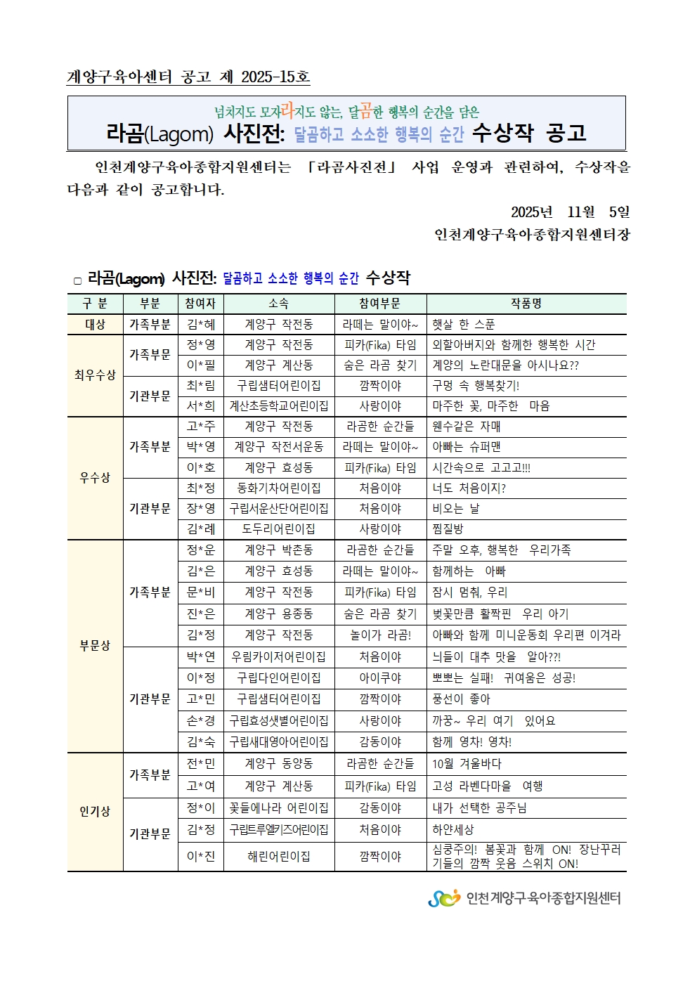 라곰사진전 전시회 및 시상식 일정은 추후 안내드리겠습니다