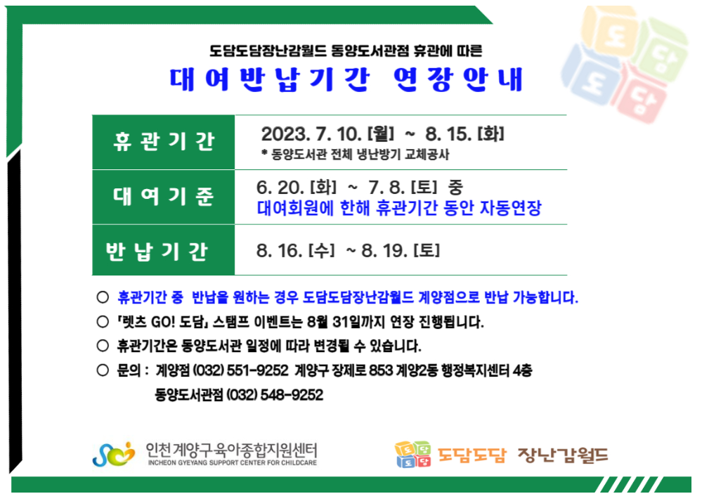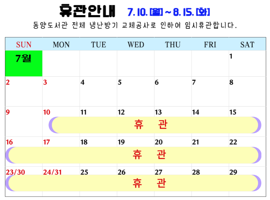 [도담 동양도서관점] 냉난방기 교체공사으로 인한 휴관 안내