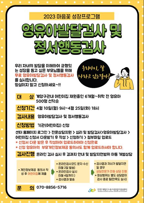 (본센터)2023년[영유아발달검사 및 정서행동검사] 신청 조기 마감 안내