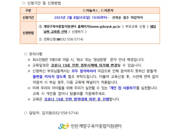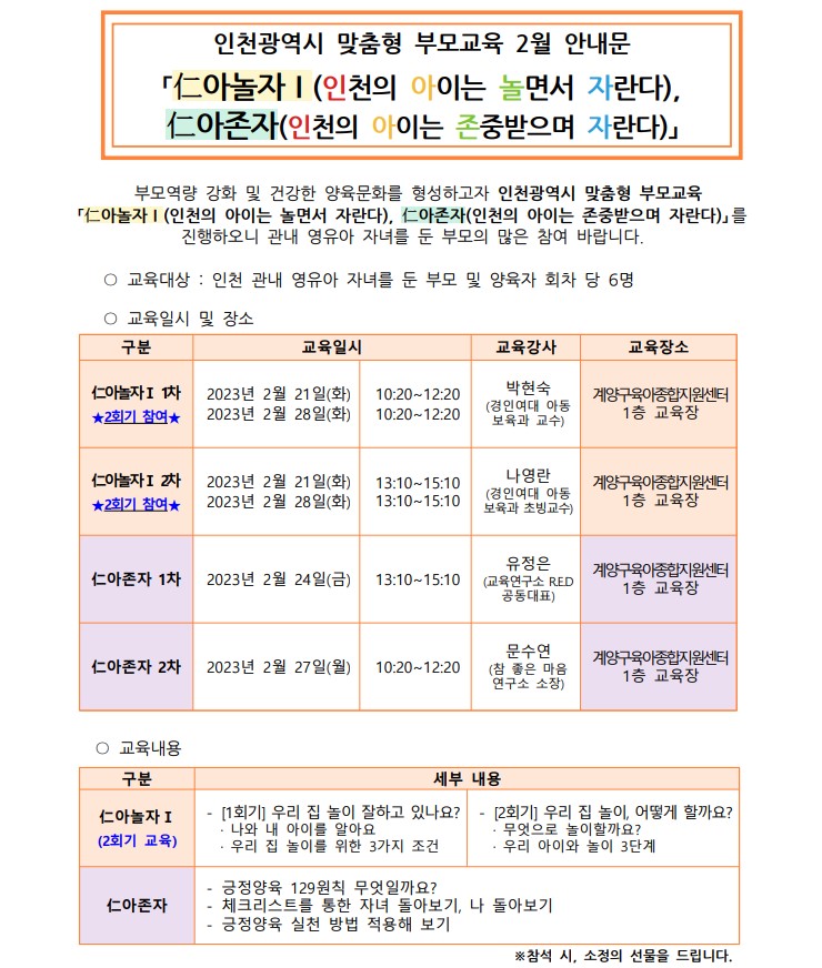 [인천형] 2월 부모교육( 仁아놀자Ⅰ, 仁아존자) 프로그램 안내
