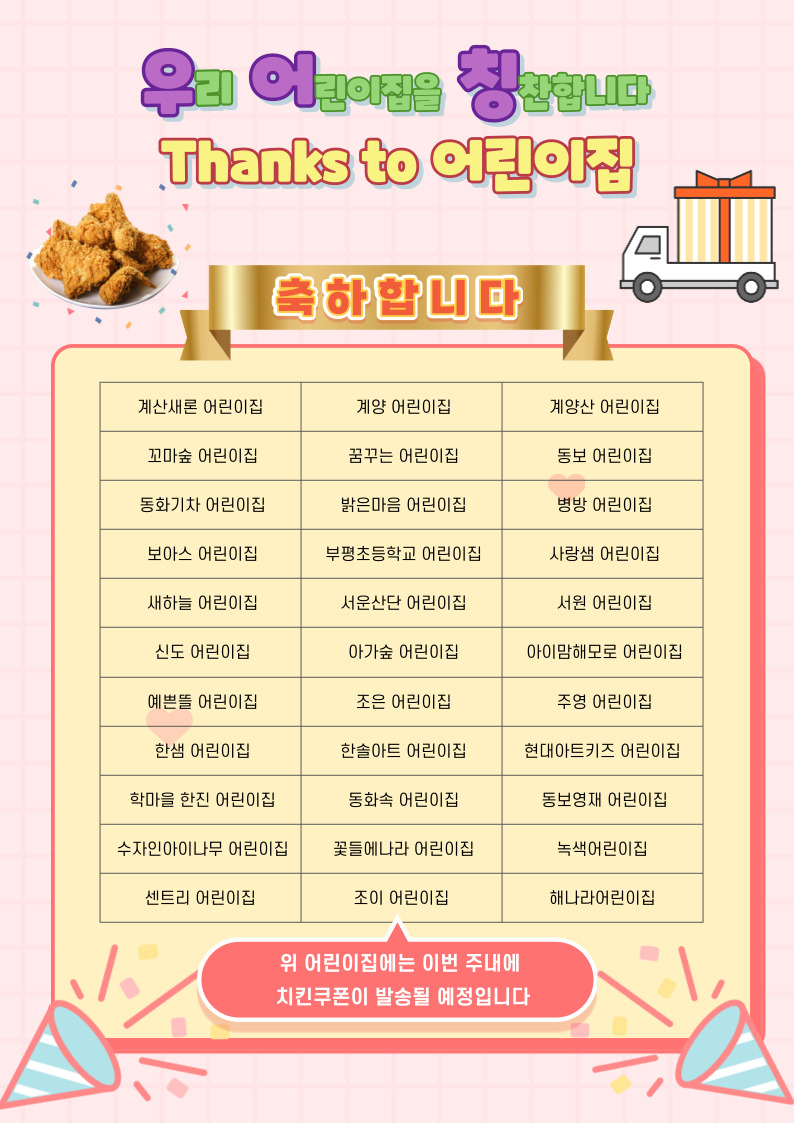 Thanks to 어린이집 "우리 어린이집을 칭찬합니다" 결과 발표