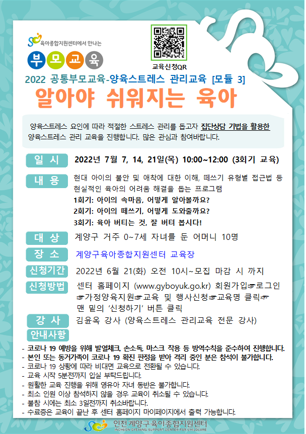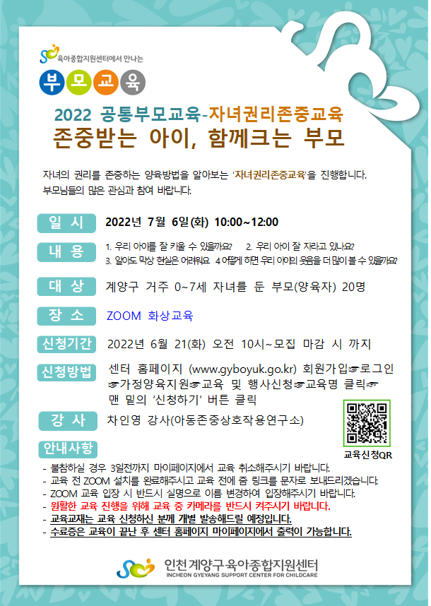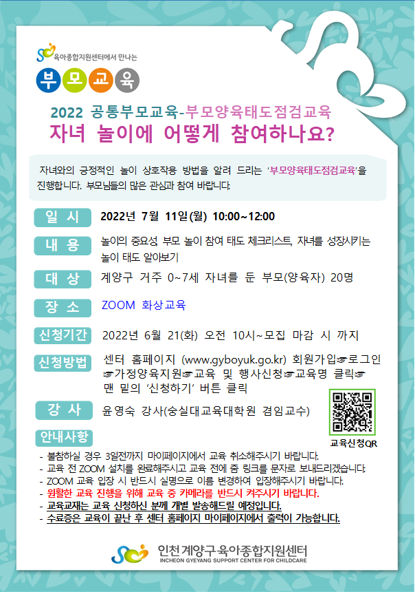 2022년 공통부모교육 7월 모집 안내(부모교육)
