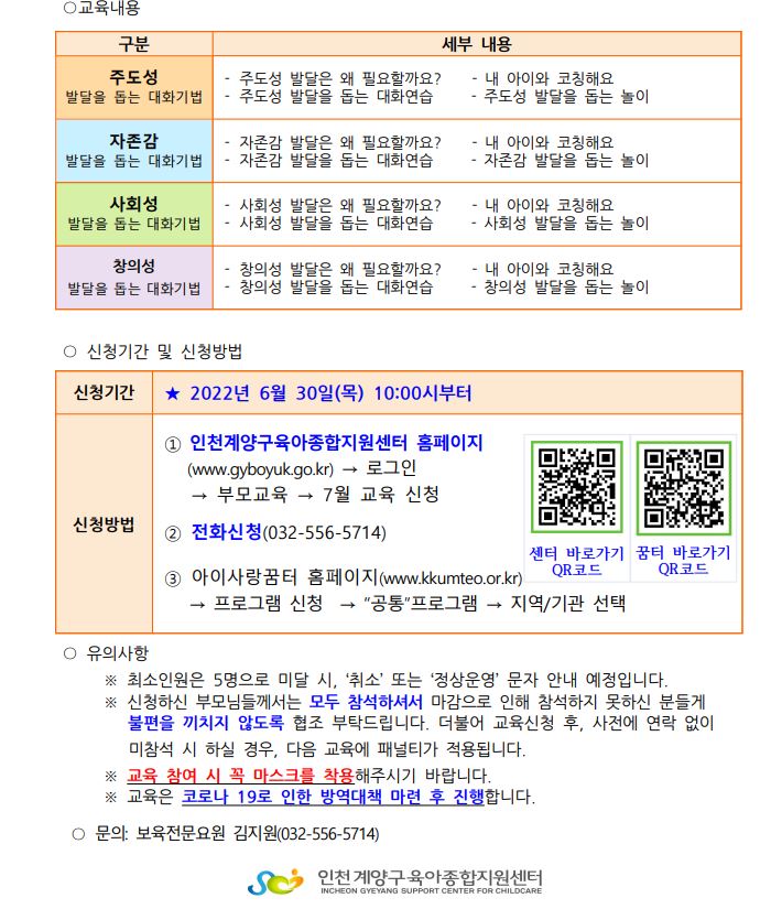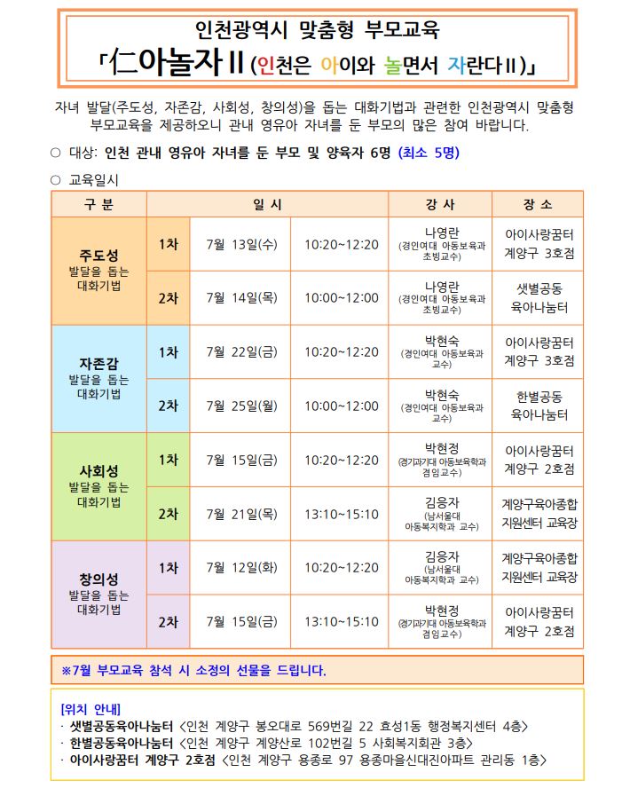 2022년 인천형 부모교육 7월 모집 안내(인아놀자)