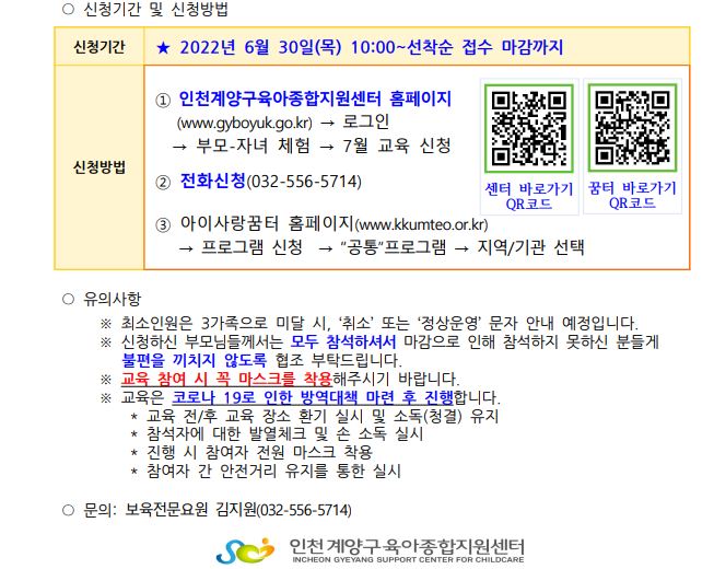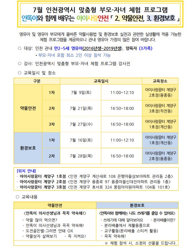 2022년 인천형 체험 7월 모집 안내(안똑이)