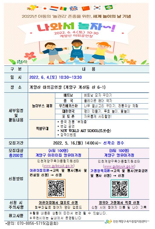 2022년 아동의 '놀권리' 존중을 위한, 세계 놀이의 날 기념 "나와서 놀자"신청 안내