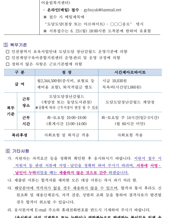 (본센터) 도담도담장난감월드 직원 채용 공고