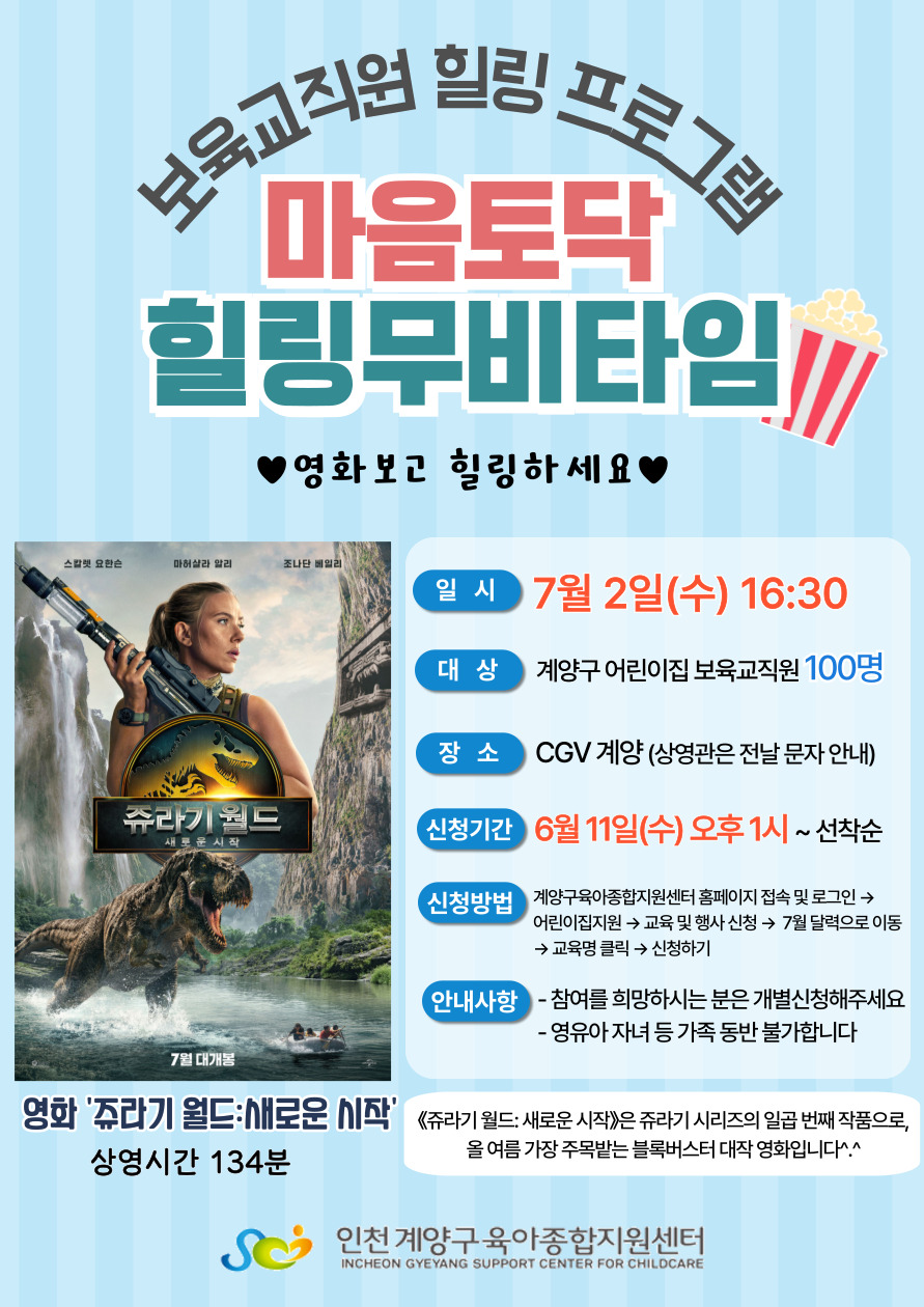 보육교직원 힐링 프로그램 <마음토닥 힐링무비타임> '쥬라기 월드:새로운 시작' 신청 안내