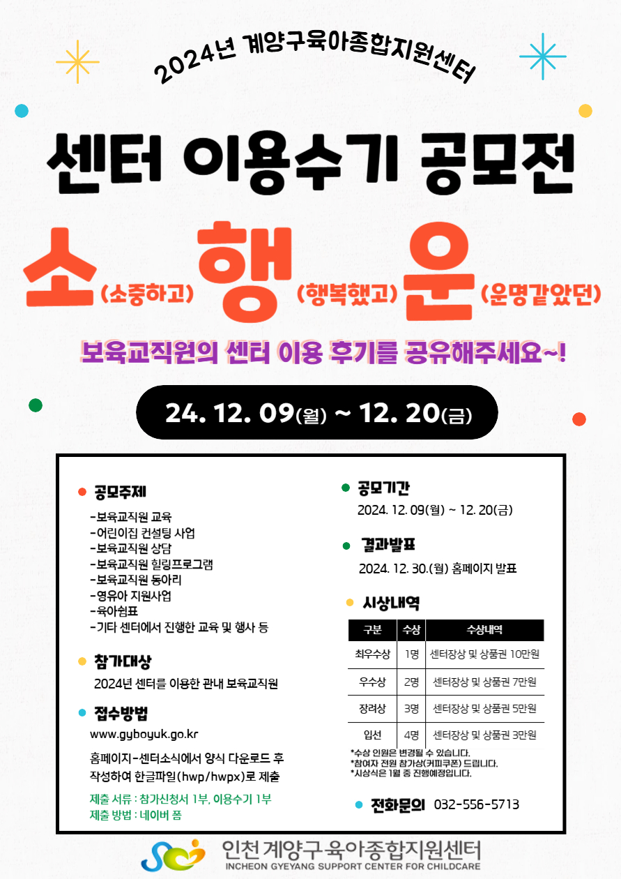 [보육교직원 부문] 센터 이용수기 공모전 『소(소중하고).행(복했고).운(명같았던 센터이용 이야기).』