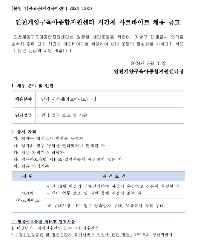 【붙임】시간제아르바이트 채용 지원서 및 개인정보 동의서 등.hwp