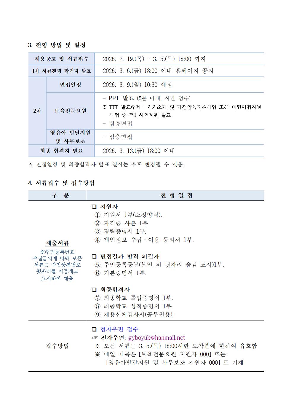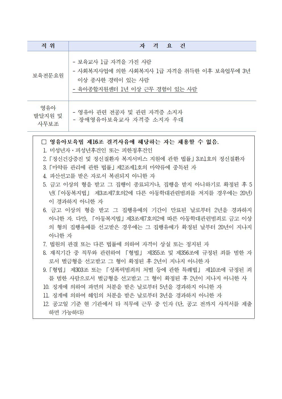 (본센터) 직원(보육전문요원 및 영유아발달지원 사무보조) 채용 공고