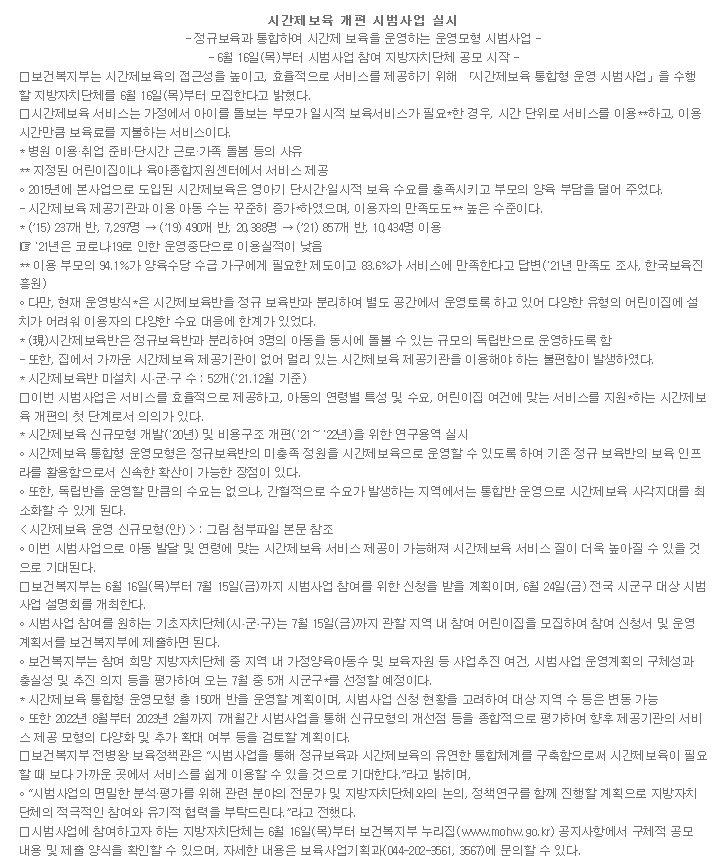 [보건복지부] 시간제보육 개편 시범사업 실시