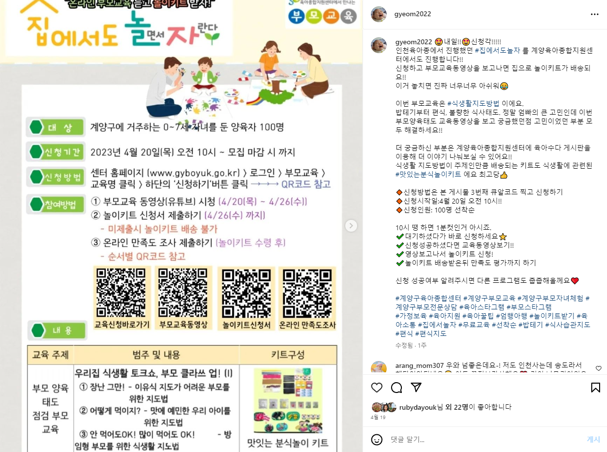 [부모SNS홍보단-계플루언서(4월)] 비대면공통부모교육 - 집에서도 놀(면서)자(란다) 참여 안내